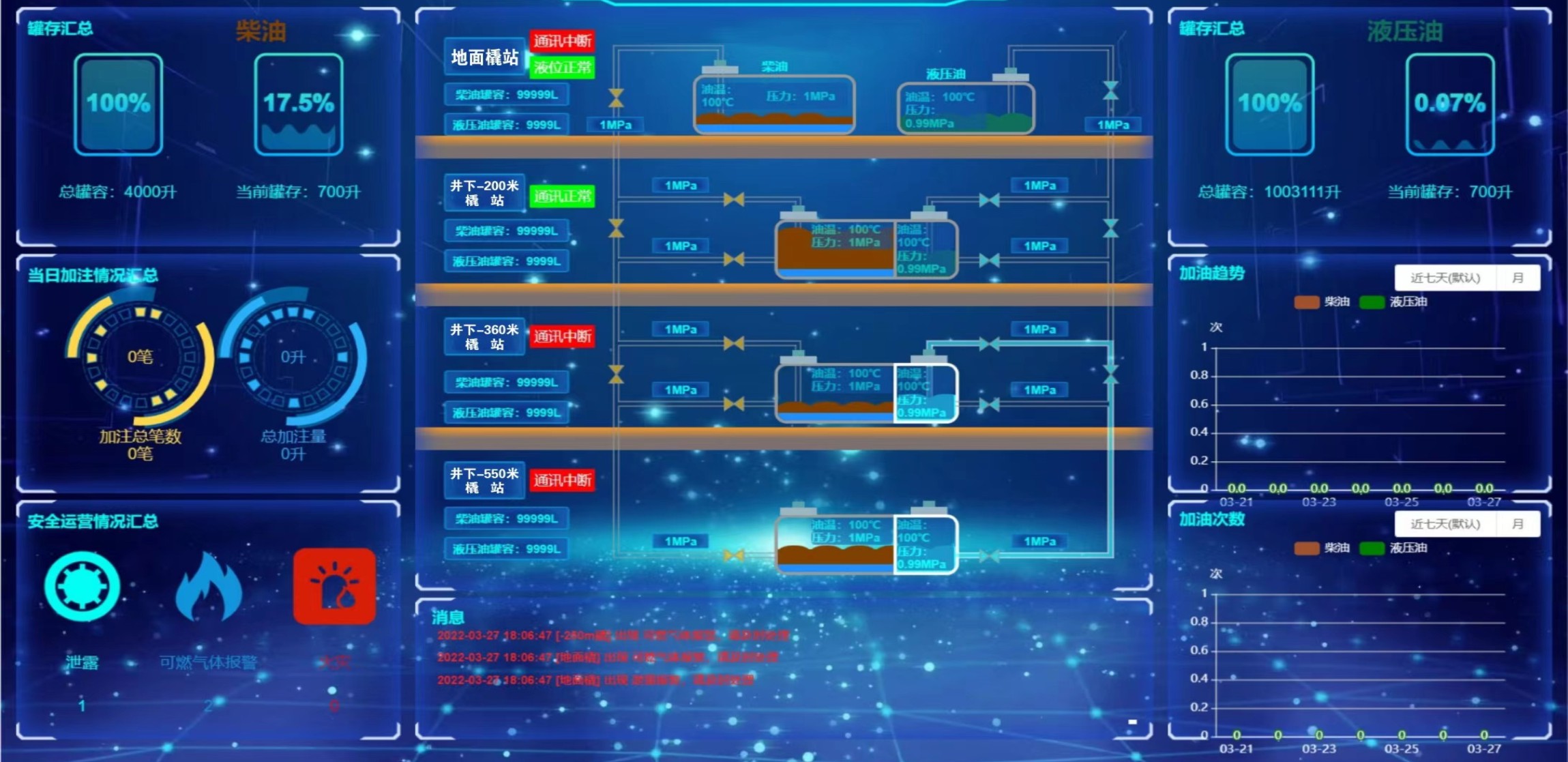 凡口鉛鋅礦井下680米智能供油系統 目前正有序施工中, 預計9月底完工并投入使用。該項目為全國首創, 由韶關企業進行技術攻堅 并申請多項國家專利, 擬申報吉尼斯世界紀錄 “全球最深的智能供油系統”。 凡口鉛鋅礦井下智能供油系統 需在地面設置橇裝加油裝置, 并分別在地下 330米、480米和680米處 建設智能化供油系統, 通過鉆孔鋪設輸油管線, 將油品從地面輸送到井下。 地下330米智能加油點, 目前已進入收尾階段, 現場有兩根 從地面裝置接下來的輸油管, 用于工程車加油, 另一邊也有兩根輸油管輸送到 地下480米和680米的智能加油點。 別看油管很細,鉆孔不大, 但施工難度并不小, 全長3千多米的輸油管, 垂直打孔偏差不能超過1米。 作為亞洲最大的 單體鉛鋅銀礦生產基地, 凡口鉛鋅礦 有井下工程車輛和設備100多臺, 井下用油量大。 井下智能化供油系統啟用后, 不僅解決井下用油安全、環保風險, 同時降低生產用油成本, 推進凡口鉛鋅礦建設智能化礦山, 實現“無人開采”。 如果鉆孔偏差太大,就找不到鉆下來的孔,影響輸油管道的布設,增大成本。3千多米有5千多個焊接點,所有的焊接口都要達到高壓管道的焊接要求,這個項目是全國首創,在全國所有礦山企業中,我們是首次使用通過輸油管道往井下輸油,并且實現智能控制的方案。 這個月底把地下330米加油點完工,開始加油,9月底把底下480米和680米開通使用。希望通過這個項目打造創新科技的韶關樣板,把先進的經驗和技術推廣到全省、全國乃至全球。